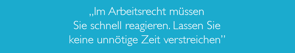 Bei arbeitsrechtlichen Fragen - besonders bei Kündigungen - geht es stets um Fristen, die einzuhalten sind. Lassen Sie daher keine Zeit verstreichen und holen Sie schnellstmöglich anwaltlichen Rat ein. So können im Arbeitsrecht ausgesprochene Abmahnungen und Kündigungen auf ihre rechtliche Wirksamkeit hin geprüft und ggf. geeignete Gegenmaßnahmen durch den verteidigenden Anwalt eingeleitet werden.